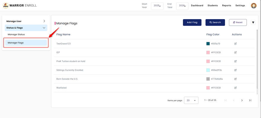 The Manage Flags section allows you to set up color-coded flags to tag and identify records based on specific criteria.
