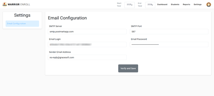 To set up your email configurations for notifications, confirmations, and communications within the system, follow the steps below: